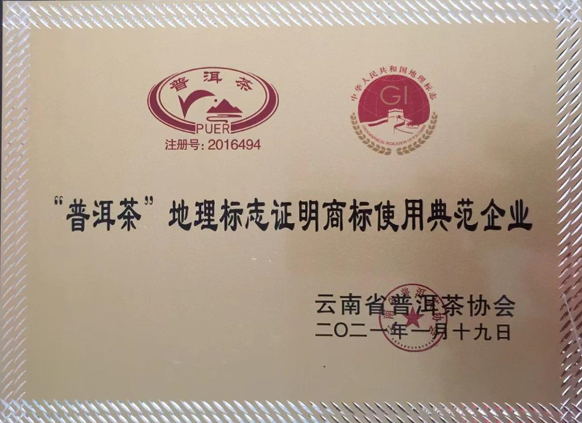 普洱茶地理標志證明商標使用典范企業(yè)
