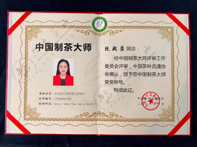 六大茶山董事長阮殿蓉女士受邀參加并被授予“中國制茶大師”稱號