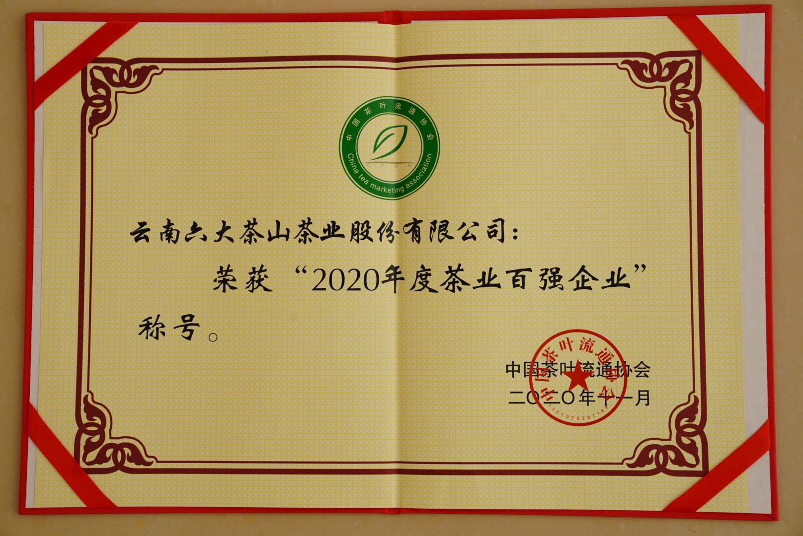 2020年度茶業(yè)百強企業(yè)