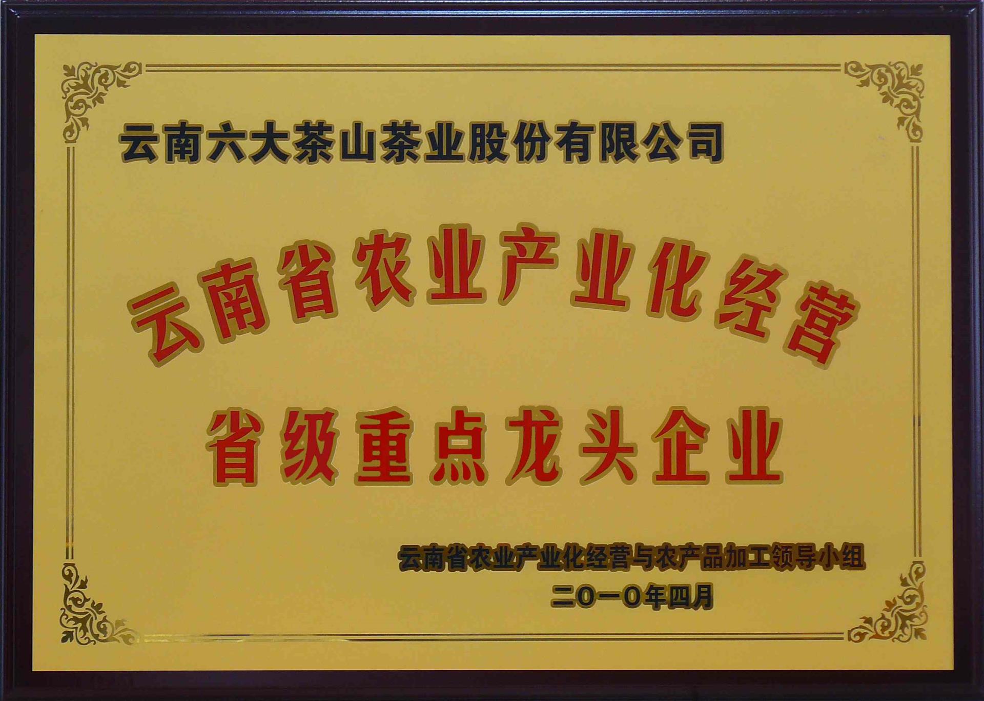 云南省農(nóng)業(yè)產(chǎn)業(yè)化經(jīng)營省級重點龍頭企業(yè)